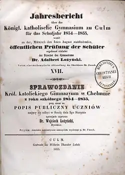 - ↑ Gechichte des Königliches Gymnasiums zu Braunsberg während seines dreihundertjährigen Bestehens (oprac. Johann Joseph Braun), Braniewo [1865], s. 137 (pozycja nr 95 wykazu abiturientów).