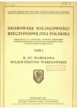 - 1 2 3 Skorowidz miejscowości Rzeczypospolitej Polskiej - Tom I - m. st. Warszawa, województwo warszawskie, Główny Urząd Statystyczny Rzeczypospolitej Polskiej, Warszawa 1925