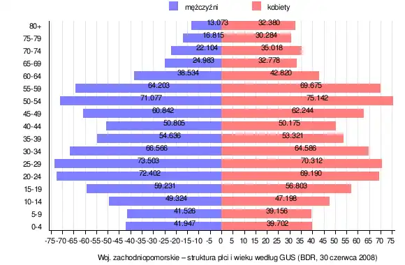- ↑ Województwo zachodniopomorskie w liczbach [online], Polska w liczbach [dostęp 2015-05-20], liczba ludności na podstawie danych GUS.