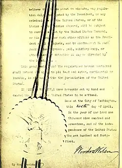 - ↑ Obecnie wypowiedzenie wojny jest rzadko stosowane wobec potępienia wojny przez Pakt Brianda-Kellogga i zakaz grożenia użyciem siły w Karcie Narodów Zjednoczonych.