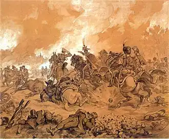 ![]() Śmierċ Cypriana Godebskiego pod Raszynem, obraz Januarego Suchodolskiego z 1855 roku | |||