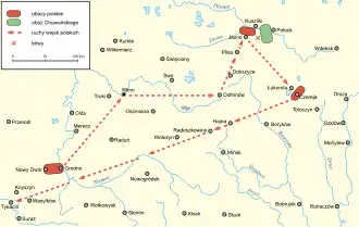 Na Litwie 19 sierpnia do Lepela przybył Pac. Tam stoczył walkę z podjazdem rosyjskim, po czym 27 sierpnia znalazł się w Orszy.