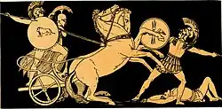 Achajowie rozbili obóz pod murami Troi i przez dziewięć lat plądrowali okolice, najeżdżając ziemie sojuszników Priama. Do przełomu w wojnie doszło w dziesiątym roku. Starcia pomiędzy Trojanami i Achajami trwały przez 41 dni. W opowieści Homera Trojanie pod dowództwem Hektora zaczęli ofensywę, gdy Achilles ze swoimi myrmidonami odmówił udziału w walce po tym, jak Agamemnon porwał jego niewolnicę Bryzeidę. Trojanie zaatakowali obóz grecki i podpalili flotę. Dopiero śmierć Patroklosa zmusiła Achillesa powrócić na pole bitwy i zabić Hektora, by dokonać zemsty za zabójstwo ukochanego. Na pomoc Trojanom przybyły Amazonki pod dowództwem królowej Pentezylei. W starciu z wojskiem Achillesa zostały jednak powstrzymane, a królowa zginęła. Niedługo potem Achilles został zabity strzałą Parysa[18].