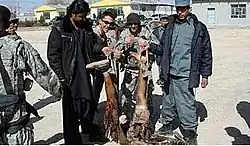 - ↑ U.S. troops posed with body parts of Afghan bombers. Los Angees Times, 2012-04-15. (ang.).