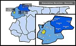 Obszarem działania Wojskowej Komendy Uzupełnień w Elblągu są miasta i gminy objęte zasięgiem administrowania powiatów: elbląskiego, miasta Elbląg oraz braniewskiego[2]. Obszar o powierzchni 2698 km², zamieszkały przez około 223,9 tys. ludności. Średnia gęstość zaludnienia wynosi 83 osoby na 1 km².[3]
