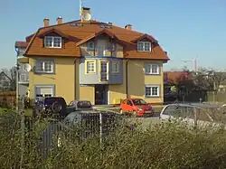 - ↑ Dziś w obiekcie tym, mieszczącym się przy ul. Przystankowej róg Pawiej, mieści się szkoła podstawowa, przeniesiona tu ok. r. 2000 z poprzedniej lokalizacji przy ul. Pawiej.