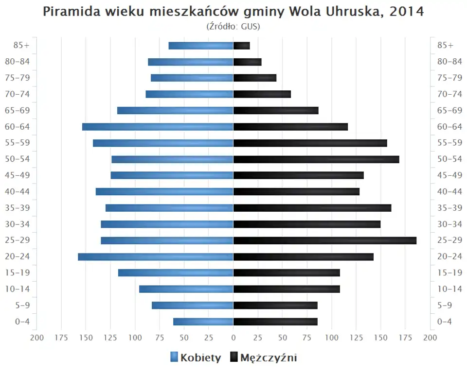 - Piramida wieku mieszkańców gminy Wola Uhruska w 2014 roku[2].