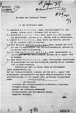 - ↑ Die Gedenkstätte Plötzensee: Der 20. Juli 1944. [dostęp 2009-06-21]. [zarchiwizowane z tego adresu (24 września 2015)]. (niem. • ang.).
