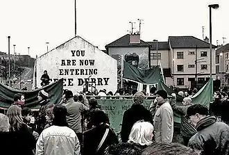 Napięta sytuacja miała swój punkt kulminacyjny 12 sierpnia 1969, kiedy to rozegrała się trzydniowe zamieszki pomiędzy mieszkańcami a Royal Ulster Constabulary, które przeszły do historii jako bitwa o Bogside. W dniu 14 sierpnia jednostki armii brytyjskiej zostały rozmieszczone na skraju Bogside, a funkcjonariusze RUC zostali wycofani. Derry Citizens' Defence Association, czyli Stowarzyszenie na rzecz Obrony Obywateli Derry (w skrócie DCDA) zadeklarowało zamiar utrzymania tego obszaru zarówno wobec armii brytyjskiej, jak i RUC, dopóki ich żądania nie zostaną spełnione. Od tego czasu armia brytyjska nie próbowała wchodzić na teren opanowany przez buntowników. Zaostrzona sytuacja trwała aż do 12 października 1969 roku, kiedy po opublikowaniu raportu Johna Hunta pozwolono na wejście do Wolnego Derry żandarmerii. Brytyjscy żandarmi wkroczyli tam pieszo i nieuzbrojeni[4].