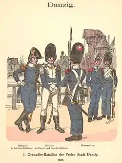 Wycofujący się Prusacy zabrali z kasy miejskiej 2 miliony franków. W kolejnych latach Gdańsk ponosił koszty związane z utrzymaniem garnizonu francuskiego i prowadzeniem dużych prac fortyfikacyjnych. Garnizon wojskowy w 1808 składał się z 8000 żołnierzy, jednak z powodu pogarszania się stosunków z Rosją liczba żołnierzy była zwiększana. W 1813 garnizon liczył 36 000 żołnierzy[2].