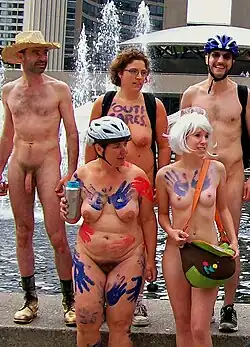 W roku 2003 zawiązała się międzynarodowa grupa organizatorów pod kierownictwem Conrada Schmidta. W wyniku tych działań doszło do manifestacyjnego przejazdu nagich rowerzystów na kontynencie amerykańskim. Nadzy rowerzyści pojawili się m.in. w kanadyjskim mieście Vancouver i w takich miastach USA jak: Nowy Jork, Oregon, Portland, Chicago, Austin. Protesty skierowane były przeciw wojnie w Iraku.