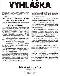 Zajęcie 15 marca 1939 roku przez Niemcy czeskiej części Czechosłowacji przyspieszyło przejście na ruch prawostronny. Wprowadzono go rozkazem naczelnego dowódcy niemieckich wojsk lądowych, Walthera von Brauchitscha, w Ostrawie już pierwszego dnia okupacji, na pozostałym obszarze (z wyjątkiem Pragi) Protektoratu Czech i Moraw dwa dni później (17 marca), a w samej Pradze od godziny 3 nad ranem 26 marca 1939 roku.