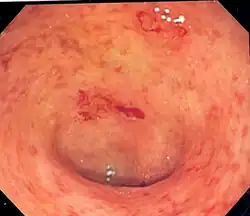 - środowiskowe – Istnieje korelacja pomiędzy stanem psychicznym pacjentów (takim jak uraz psychiczny i nieprawidłowa reakcja na stres) a występowaniem choroby. Ponadto flora bakteryjna u osób chorych na colitis ulcerosa różni się jakościowo i ilościowo od flory występującej u osób zdrowych, jednak nie wiadomo, czy jest to przyczyna czy raczej skutek choroby. Szczególny wpływ mają niektóre szczepy Escherichia coli i Bacteroides vulgatus. Z badań kliniczno-kontrolnych wynika, że osoby z wyciętym wyrostkiem robaczkowym przed 20. rokiem życia rzadziej chorują[1]. W ostatnich latach pojawiły się metaanalizy donoszące o zwiększonym ryzyku zachorowania u osób, które nie palą bądź zaprzestały palenia papierosów; równocześnie palenie może zmniejszyć dolegliwości[2].
