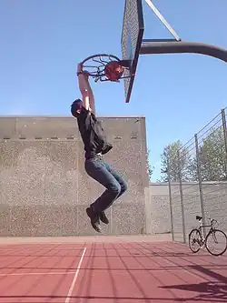 - kiss the rim – zawodnik wybija się wysoko z dwóch nóg, przechylając się mocno w kierunku kosza, robi nieznacznego dwuręcznego windmilla, w tym samym momencie wyrzucając nogi jak najwyżej w powietrze (wygląda to, jakby się wyciągał, aby dosięgnąć twarzą obręczy, „pocałować” ją i stąd nazwa)