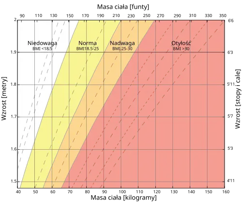 Pożądany BMI zależy od wieku i wynosi odpowiednio[8]: