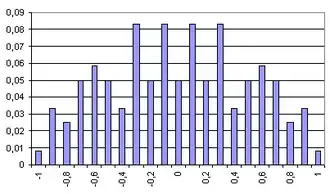 - dla zmiennych dyskretnych, minimalną wartością jego granicy, przy rozmiarze próby dążącym do nieskończoności, jest[27]