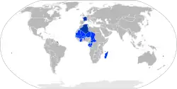 - państwa, które w późniejszym czasie uzyskały niepodległość (np. Czad, Gabon, Madagaskar, Mauretania, Senegal, Wybrzeże Kości Słoniowej)