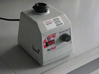 Jednym z kilku typów wstrząsarek jest, zwane żargonowo worteksem lub vortexem (od ang. vortex mixer), urządzenie mające silnik elektryczny z pionowo osadzonym wałkiem, na którego wystającym końcu osadzona jest gumowa nakładka wyprofilowana odpowiednio do kształtu dna próbówek i podobnych naczyń. Nakładka ta jest osadzona mimośrodowo w taki sposób, że gdy silnik pracuje, oscyluje ona po okręgu. Gdy do nakładki jest dociśnięte dno naczynia, jej drgania wprawiają w ruch ciecz w nim zawartą, która także zaczyna wirować, tworząc wir. Zapewnia to bardzo efektywne i szybkie mieszanie zawartości naczynia, a także dyspergowanie w cieczy osadów lub innych cząstek stałych. Wstrząsarki przeważnie są wyposażone w regulator szybkości obrotowej oraz we włącznik pracy ciągłej lub tymczasowej. Niektóre modele można włączać „automatycznie” dociśnięciem naczynia do nakładki lub przez czujnik podczerwieni wykrywający naczynie na niej obecne.