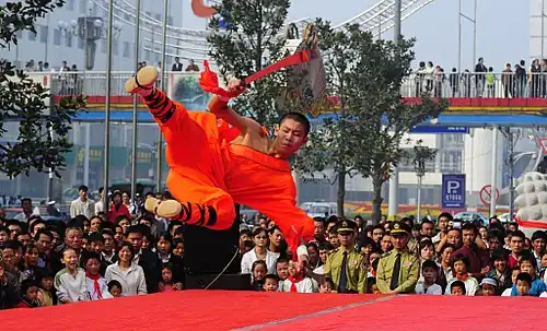 - ↑ Fowler G.A., Ye J. Kung Fu Monks Don’t Get a Kick Out of Fighting. Famous Temple Spurns Beijing Games, Sparking Trash Talk From Rivals. Wall Street Journal, 2007, grudzień, 14. Dostęp: 2012-09-21.