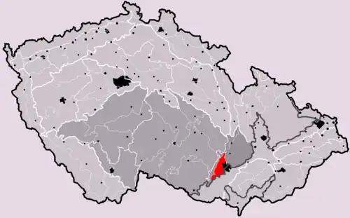Na zachodzie graniczy z Rowem Boskowickim (czes. Boskovická brázda), na północnym wschodzie z Wyżyną Drahańską (czes. Drahanská vrchovina), na południowym wschodzie z Zapadliskiem Dyjsko-Swrateckim (czes. Dyjsko-svratecký úval).
