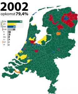 - 1 2 Verkiezingen: Tweede Kamer 15 mei 2002. verkiezingsuitslagen.nl. [dostęp 2025-05-09]. (niderl.).