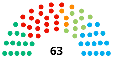 | Partia | Głosy | % | Mandaty | +/– | |||||
