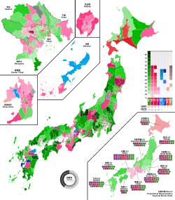 | Japońska Partia Komunistyczna | 7,096,765 | 12.55% | 2 | 24 | 26 | 15 | |