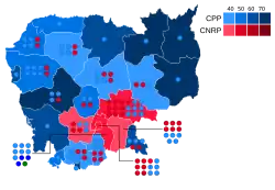Według oficjalnych wyników wybory wygrała Kambodżańska Partia Ludowa, uzyskując 48,83%, co dało jej 68 miejsc w 123-osobowym parlamencie.