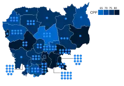Według oficjalnych wyników Kambodżańska Partia Ludowa wygrała w każdej prowincji i każdym mieście[2][3].