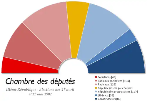 Wybory parlamentarne we Francji w 1902 roku[2] odbyły się 27 kwietnia i 11 maja. W wyborach zwyciężyli prawicowi Postępowi Republikanie, jednak ugrupowania centrowe i centrolewicowe skupione w bloku wyborczym pod nazwą Blok Lewicy (Bloc des gauches) utworzyły rząd większościowy. Oprócz partii lewicowych, które znalazły się Bloku Lewicy, silne poparcie uzyskały również partie centroprawicowe – Postępowi Republikanie, którzy osiągnęli największe poparcie (19,3%) oraz trzecia siła w Izbie Deputowanych – chadecka Akcja Liberalno-Ludowa, która osiągnęła 16-procentowe poparcie.