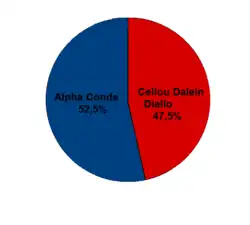 - 1 2 RESULTATS PROVISOIRES DU SECOND TOUR DE L’ELECTION PRESIDENTIELLE DU 7 NOVEMBRE 2010. presidentielle2010.ceniguinee.org – Commission Electorale Nationale Independante. [dostęp 2010-11-17]. [zarchiwizowane z tego adresu (2010-11-11)]. (fr.).