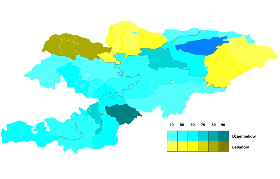 - ↑ Кандидат на пост президента Бабанов заявил о нарушениях в ходе голосования. Кыргызское телеграфное агентство, 2017-10-15. [dostęp 2017-11-04]. [zarchiwizowane z tego adresu (2017-11-04)]. (ros.).