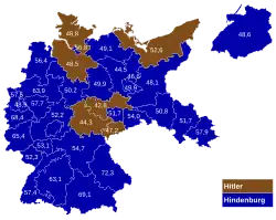 | Adolf Hitler | NSDAP | 11.339.446 | 30,2 | 13.418.517 | 36,7 |
