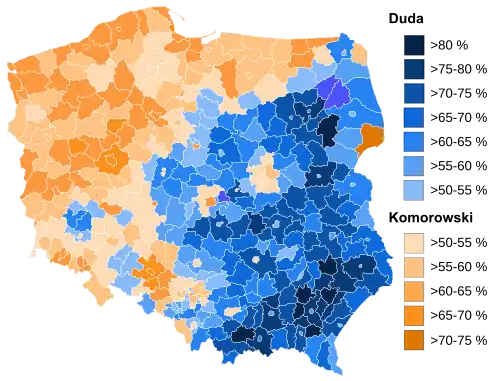 - ↑ Duda ucieka Komorowskiemu. Różnica dużo większa, niż po I turze. wp.pl, 15 maja 2015. [dostęp 2019-12-27].
