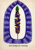 Pocztówki wielkanocna z wycinanką kurpiowską i palmą z Puszczy Zielonej, 1967
