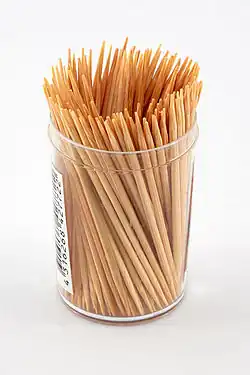 Wykałaczka – mały kawałek drewna lub innego materiału, np. plastiku, służący do usuwania resztek pokarmu spomiędzy zębów po jedzeniu. Przypomina mały (o długości kilku centymetrów), cienki (1 milimetr) patyczek, ostro zakończony z co najmniej jednej strony.