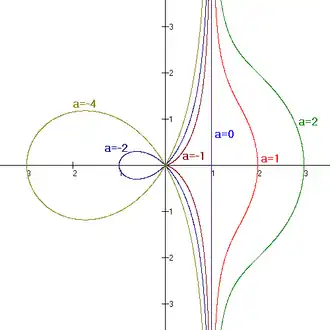 dla niezerowej liczby a, wykresem równania jest konchoida de Sluze.