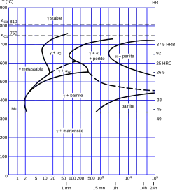 - CTPi – prezentujący zmianę struktury przy chłodzeniu materiału z wytrzymaniem izotermicznym,