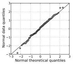 Wykres kwantyl-kwantyl (wykres Q-Q[1]) – graficzna metoda porównywania dwóch rozkładów prawdopodobieństwa poprzez wykreślenie ich kwantyli względem siebie[2]. Punkt (x, y) na wykresie odpowiada jednemu z kwantyli drugiego rozkładu (współrzędna y) wykreślonego względem tego samego kwantyla pierwszego rozkładu (współrzędna x).