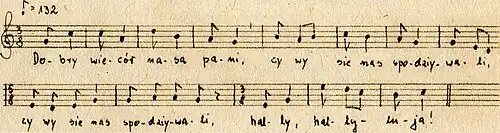 - odśpiewanie lokalnych pieśni z refrenem Hally, hallyluja (z czasem w repertuar włączono inne pieśni religijne, np. Wesoły nam dzień nastał, czy Chrystus zmartwychwstan jest),