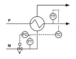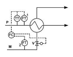 Na potrzeby sterowania strumienie w wymienniku można podzielić na procesowy (P, tj. strumień główny, którego temperatura jest regulowana) oraz medium (M, tj. strumień pomocniczy, który służy do kontroli, np. woda do chłodzenia lub para do podgrzewania). Zwykle parametry strumienia procesowego na wlocie i wylocie z wymiennika są ściśle zdefiniowane. Strumień medium posiada zdefiniowane parametry na wlocie oraz zakres w jakim mogą się zmieniać parametry na wylocie.
