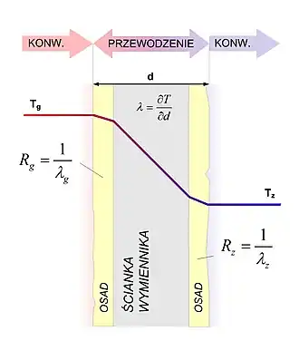 - konwekcja – ruch ciepła z jednoczesnym ruchem masy (np. z płynu do ścianki wymiennika),