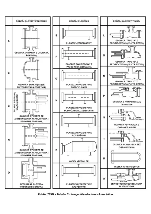 - Typ płaszcza w klasyfikacji TEMA. Normy TEMA obejmują siedem typów płaszcza[6]: