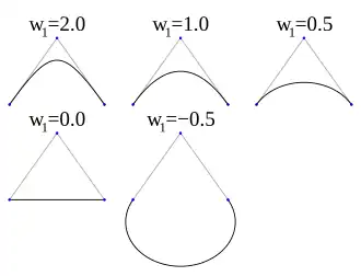 Ponadto w stosunku do krzywych wielomianowych, wymierne krzywe Béziera mają następujące zalety: