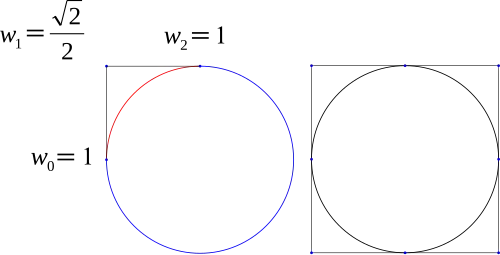 Punkt na krzywej można również znaleźć za pomocą wymiernego wariantu algorytmu de Casteljau. Punkt można także wyznaczyć obliczając współrzędne punktu w przestrzeni jednorodnej, a następnie przejść na współrzędne kartezjańskie.