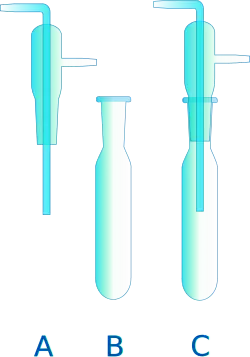 Wymrażacze dwuczęściowe (C na rysunku) zazwyczaj składają się z grubościennego naczynia ze szlifem żeńskim (B na rysunku) i nasadki (A na rysunku) ze szlifem męskim. Wyprowadzenia zakończone są oliwkami. Długość rurki jest zazwyczaj tak dobierana, aby po zmontowaniu całości dochodziła do ok. połowy długości zestawu.