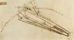Ok. 1485 roku Leonardo zaprojektował ornitopter[11][32]. Szkic znajdujący się w Manuskrypcie paryskim B jest pierwszym szczegółowym projektem maszyny latającej[33].