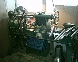 Wyoblarz pracuje na maszynie nazywanej wyoblarką. Termin ten stosujemy tylko do rzemieślnika pracującego na wyoblarce ręcznej. W czasie wykonywania przedmiotów na wyoblarce automatycznej mamy do czynienia z operatorem wyoblarki automatycznej.