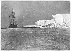 Załoga „Frama” podróżowała na południe w szybkim tempie. 1 stycznia 1911 roku z pokładu dostrzeżono pierwsze góry lodowe[67]. 11 stycznia na horyzoncie pojawił się Lodowiec Szelfowy Rossa, zaś 14 stycznia „Fram” wpłynął do Zatoki Wielorybiej[67].