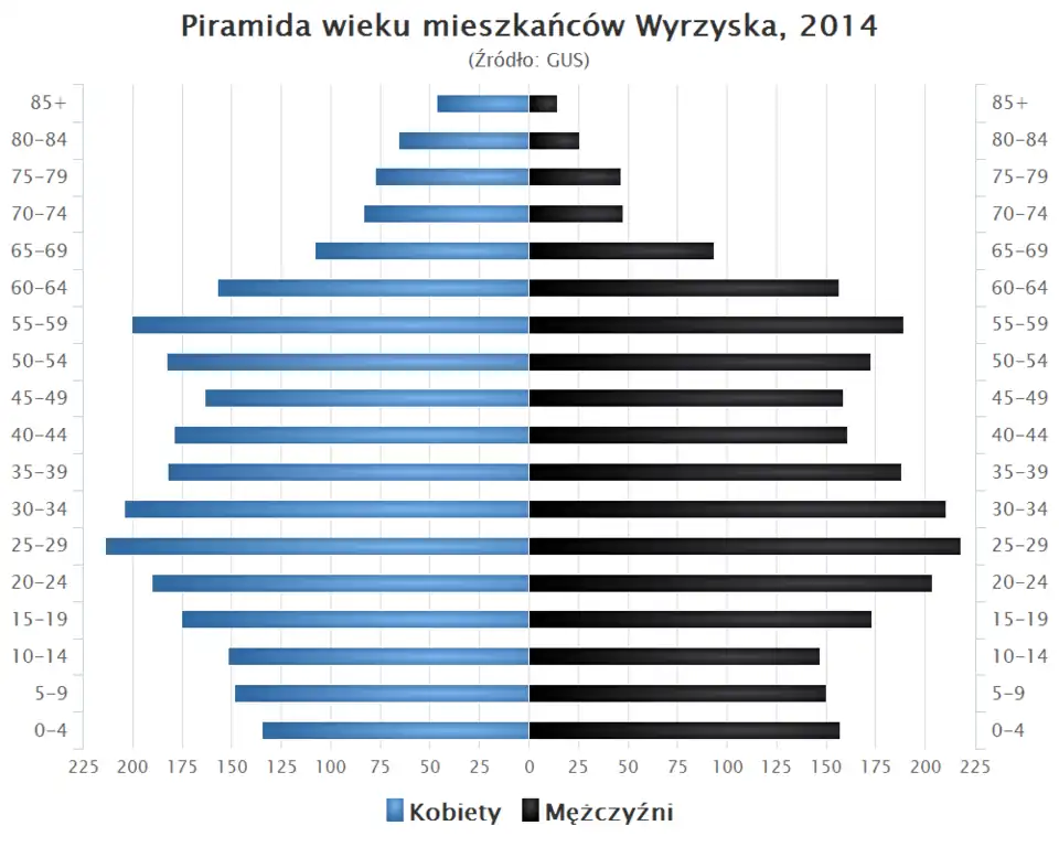 - Piramida wieku mieszkańców Wyrzyska w 2014 roku[1].